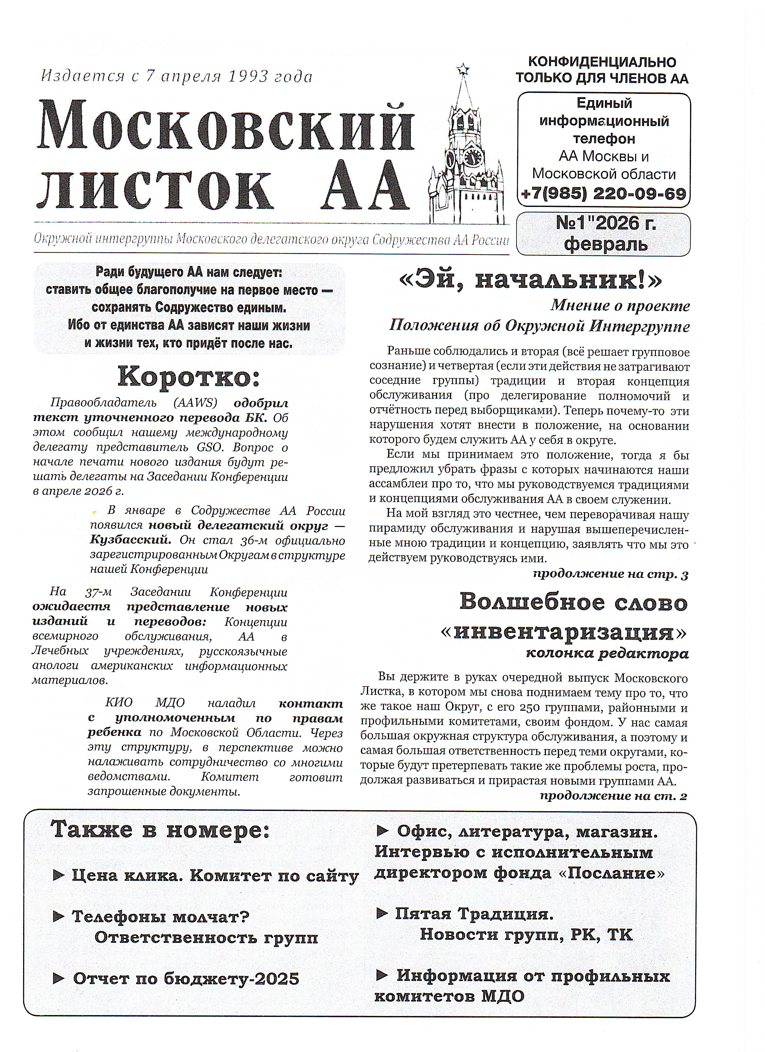 ► Наша пятая традиция. Новости групп и районных комитетов.